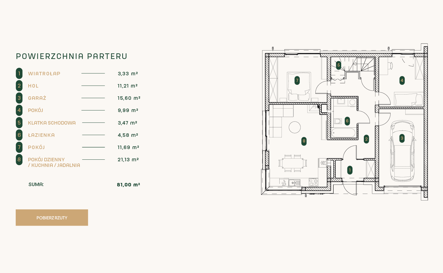 • Łazienki: 15 m2